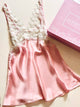 Elevate your elegance with our captivating silk and lace night suit. Immerse in the delicate touch of silk and the allure of lace for a night of sheer luxury.