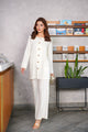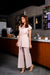Soft blush tones meet refined sophistication. The Blush Nude Co-ord features a wrap-style top with a statement waist tie and wide-leg Irish linen trousers, designed for effortless transitions from cozy afternoons to chic evenings.