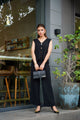 Deep navy meets fluid sophistication. The Twilight Muse Co-Ord features a wrap-tie style top paired with slightly wide-leg linen trousers, designed for seamless transitions from quiet afternoons to evenings of understated elegance.